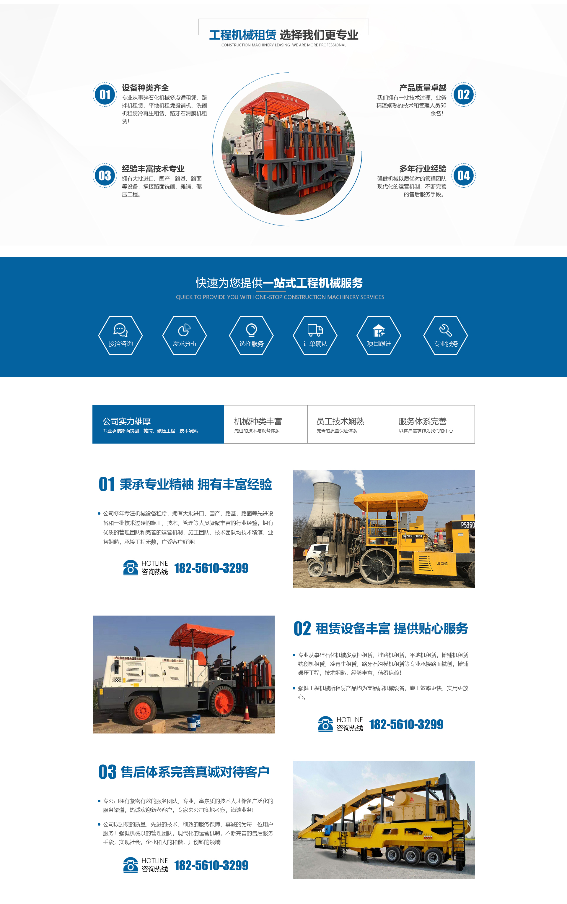 安徽強(qiáng)建工程機(jī)械有限公司是一家專業(yè)從事碎石化機(jī)械多點(diǎn)錘租賃、路拌機(jī)租賃、平地機(jī)租賃攤鋪機(jī)、洗刨機(jī)租賃、冷再生租賃、路牙石滑膜機(jī)租賃的企業(yè)。擁有大批進(jìn)口、國(guó)產(chǎn),路基、路面等設(shè)備,承接路面銑刨、攤鋪、碾壓工程,還有一批技術(shù)過(guò)硬、素質(zhì)的施工、技術(shù)、管理等人員!技術(shù)和管理人員50余名,全部為大專以上學(xué)歷,技術(shù)精湛,業(yè)務(wù)嫻熟。強(qiáng)健機(jī)械以的管理團(tuán)隊(duì),現(xiàn)代化的運(yùn)營(yíng)機(jī)制,不斷完善的售后服務(wù)手段,實(shí)現(xiàn)社會(huì),企業(yè)和人的和諧,開創(chuàng)新的領(lǐng)域!強(qiáng)健公司熱誠(chéng)歡迎新老客戶、專家來(lái)公司實(shí)地考察,洽談業(yè)務(wù)!